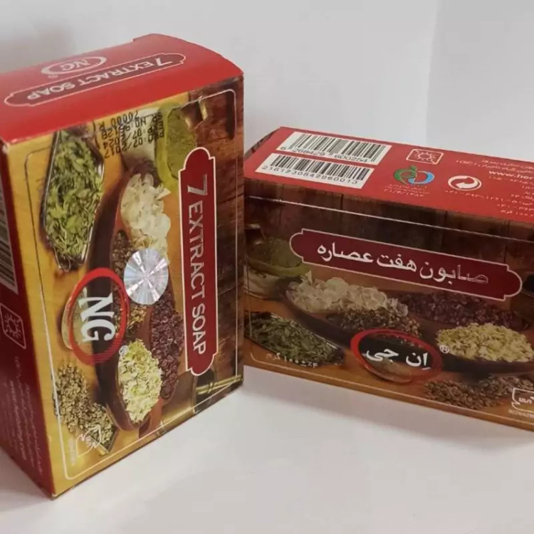 صابون هفت عصاره ان جی یک محصول کاملاً گیاهی است که در فرمول منحصر بفرد آن علاوه بر مواد اولیه صابونی از عصارههای طبیعی سدر، حنا، بابونه، گل ختمی، کتیرا، گیاه مورد، گزنه و روغن نارگیل اصل استفاده شده است. به همین دلیل این محصول به منظور جلوگیری از ریزش مو، رفع شوره سر، رفع موخوره، تقویت پیاز مو، برطرف کردن چربی زائد، رفع خارش سر و بدن بسیار مفید و موثر است. نکته مهم در ترکیبات موجود در این صابون، عدم وجود هیچگونه مواد قلیای اضافی یا مواد مضر و زاید است.